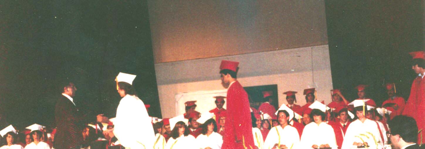I'm close to 38 and have been living in the S.Florida area for the past 15 years and married to my soulmate Nelly for 11 years this July. We are childless as of now but would like to have a baby soon. I have enjoyed a close relationship with WHS class of 80 alumni Tony Salvemini and Bob Tornquist and their respective spouses Sheila and Peggy. I've posted some photos on this page from graduation night and I apologize for third rate quality, but you get what you pay for! By the way, the picture of the kid with the oversized shades is Tito Enriquez, half of Tony Buonsanto in the front and Perry Falco pulling up the rear. Also pictured are Armando Duarte, William Bemke, and Nelson Sosa. | ||||||||||||||||